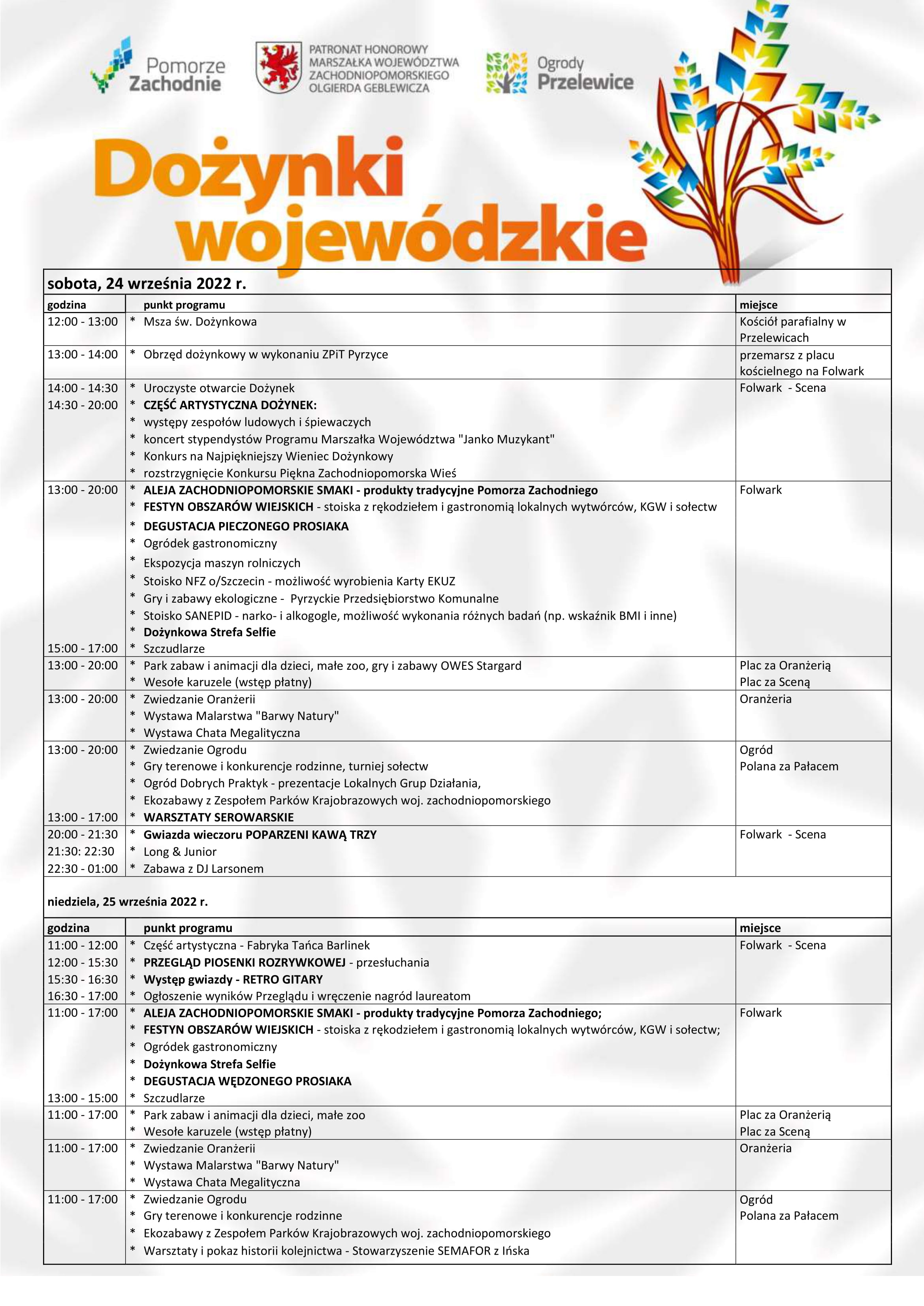 Tegoroczne żniwa i prace polowe w regionie dobiegły końca. Zgodnie z rolniczą tradycją zwieńczeniem tego okresu są dożynki. Wspólne świętowanie na Pomorzu Zachodnim odbędzie się w dniach 24-25 września 2022 r. w Przelewicach.